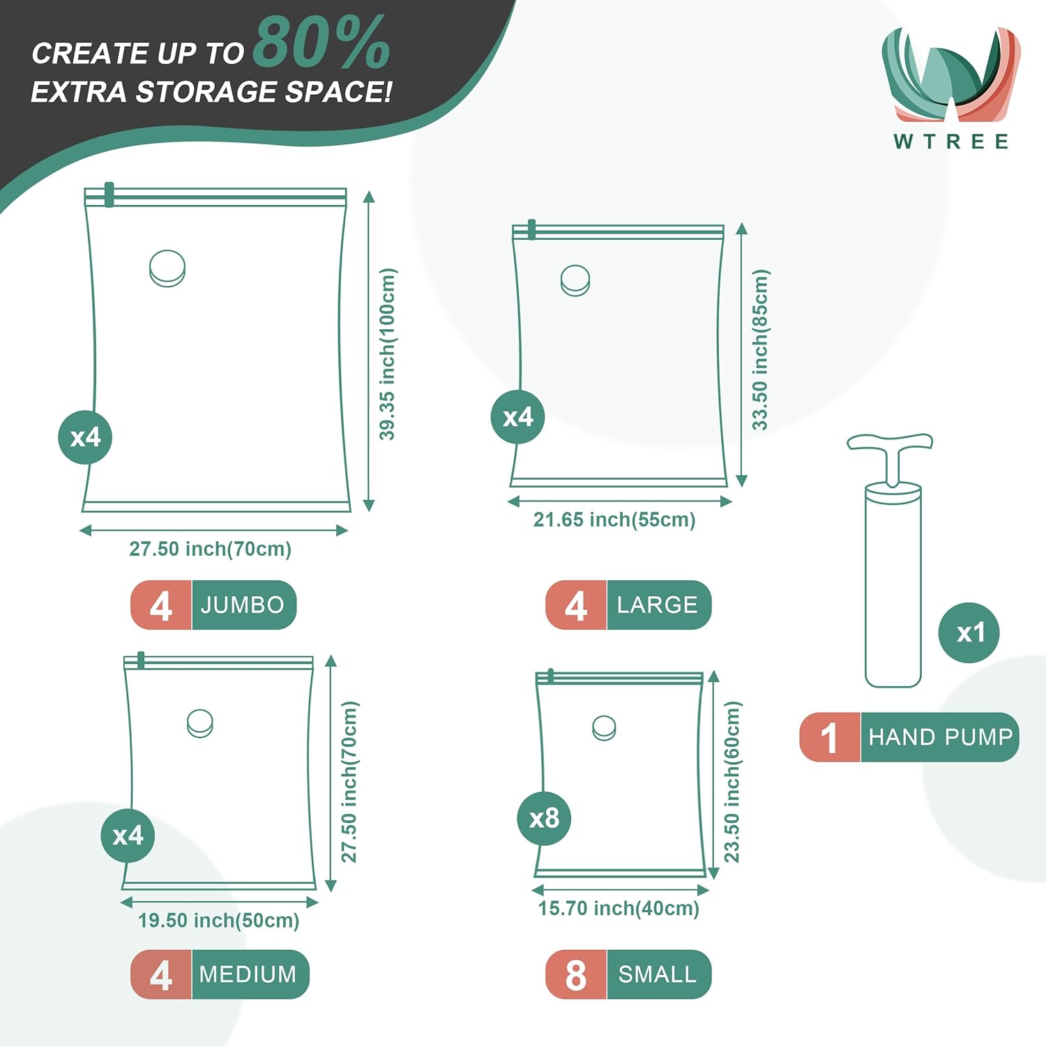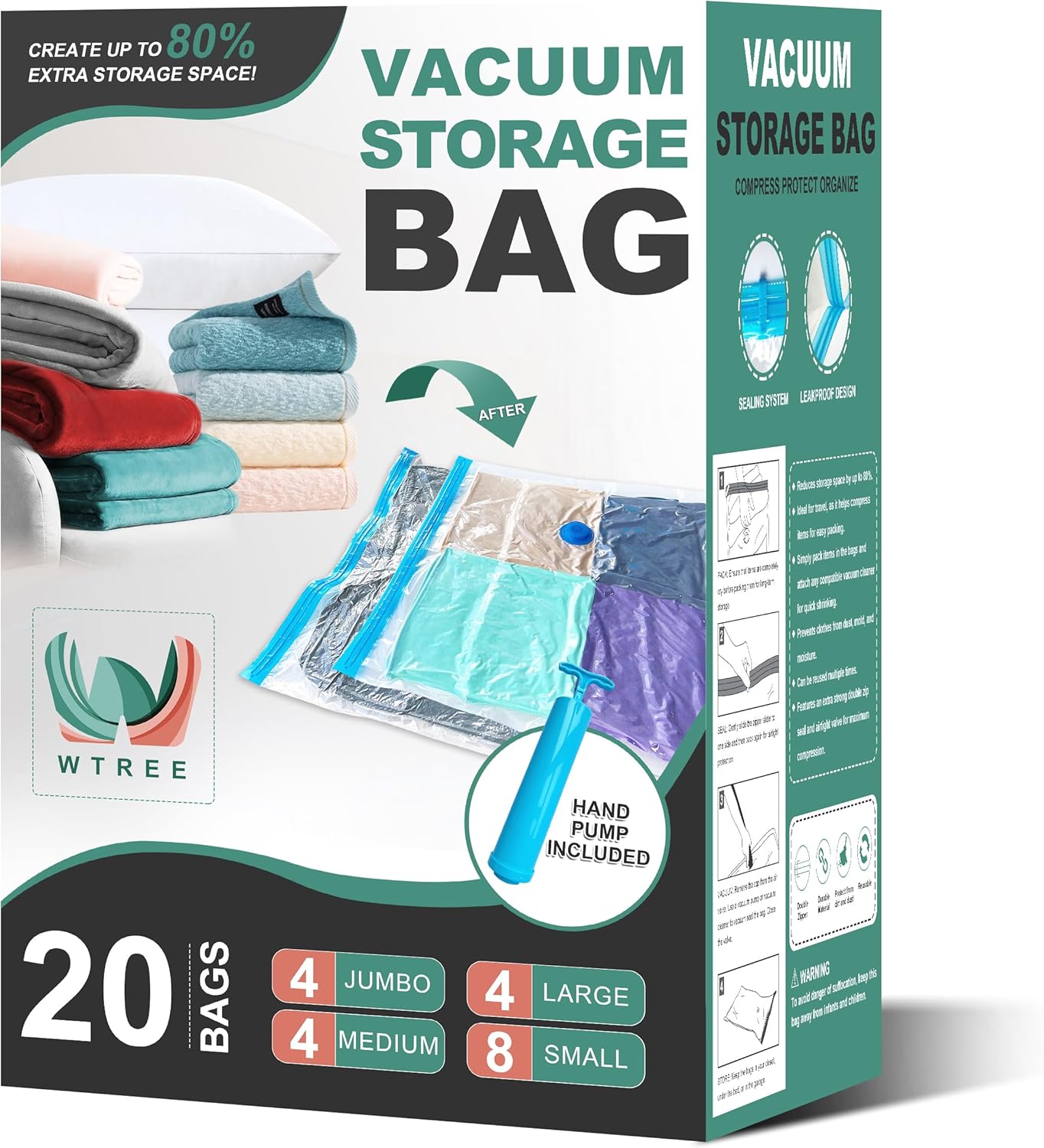 Introducing the WTREE 20 Pack Vacuum Storage Bags, the ultimate solution for maximizing your storage space and keeping your belongings organized and protected.